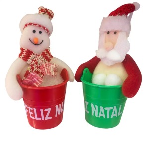 2030G ENFEITE BONECO DE NEVE E PAPAI NOEL NO BALDE