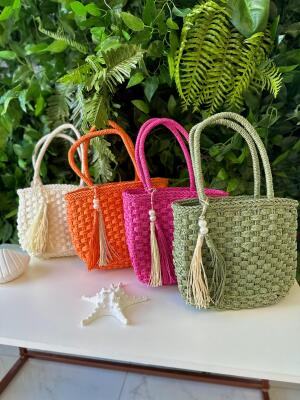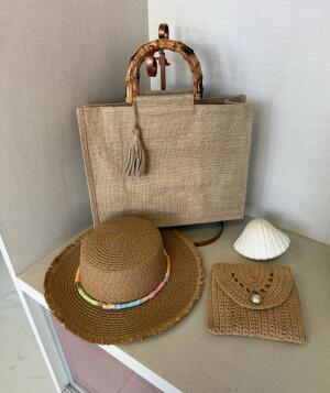 Bolsa palha sintética alça madeira