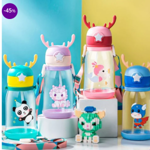 Garrafa Squeeze Infantil Com Canudo E Alça De Bichinho 600 ml U
